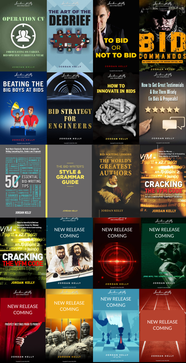 I’m Jordan Kelly – a 'veteran' operative in the arena of formal business-winning submission processes (i.e. 'bids', tenders and proposals) . . . along with the planning and execution of proactive, broader-scale pursuits.
